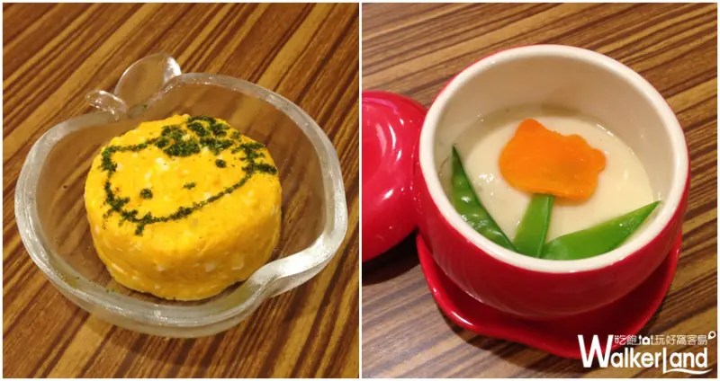 ▲Kitty火鍋套餐附餐 ─ 南瓜沙拉、蘋果茶碗蒸大走可愛風。 (圖/WalkerLand)