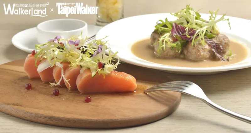 鹽漬蒔蘿生鮭魚320元(前)、奶油肉汁風味牛肉丸280元(後)/ 取北歐生鮭魚油花豐厚的腹部,先後佐馬爾頓海鹽、檸檬汁等熟成程序,再於表層灑上細紗糖炙熱,創造焦糖般的酥脆口感。牛肉丸是北歐經典料理,採取丹麥料理手法,於肉丸中加入牛奶,再淋上奶油肉汁,美味無比,亦可搭配自製野莓醬平衡味蕾。 >> 點我看更多 >>