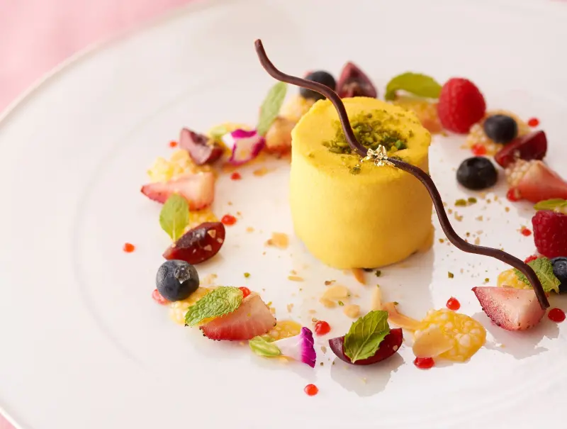 ▲「芒果起司白巧克力慕斯」以綿密奶油乳酪白巧克力慕斯包裹新鮮芒果、白巧克力巴芮及巧克力蛋糕,豐富的層次口感綻放出甜蜜驚喜! (圖/寒舍艾麗酒店)