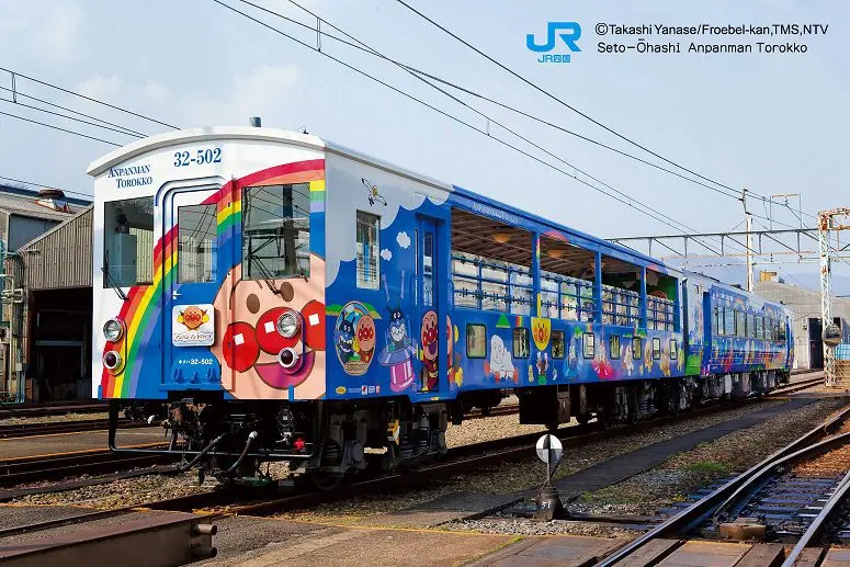 在日本除了麵包超人博物館及專賣店,另一個重要的觀光重點就是「JR四國麵包超人彩繪列車」!目前行駛中的路線共有瀨戶大橋線、予讚線、土讚線、高德‧德島線,各路線擁有不同主題的彩繪列車,完整的四國鐵道路線規劃,讓觀光客可盡興搭乘並來趟兼具文化及活力的四國巡禮。與一般列車不同,在車上更設有遊戲區、讀書區、小型專賣店,儼然是座移動式親子樂園。車上強化育兒及安全設備,讓家長與小朋友享有絕對舒適、歡樂及安全的乘車體驗。今年適逢JR四國麵包超人彩繪列車15週年,以及瀨戶大橋線累計乘客數突破10萬人次,6月時瀨戶大橋線也推出全新彩繪開放式列車及大型慶祝活動。