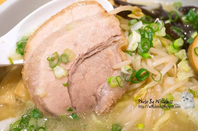 窩客「威利博斯」推薦:鹽味野菜拉麵190元,低於200元的正統日式拉麵,個人覺得很有競爭力,在中壢看到這碗拉麵端上桌的那個時候,我的內心好澎派激昂啊XD!叉燒有些厚度卻很軟嫩,不會像某南崁台茂的花XX有高超刀工片超薄吃起來較無口感,雖不像現在ㄧ些又是超大塊又是火烤之類的招式很多的叉燒,但的確是有一般好吃水準。