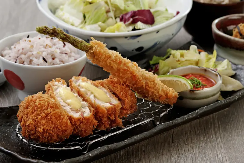 ▲勝勢豬排─酥炸培根起士甘鯛時蔬捲套餐。(圖/伊勢路-勝勢日式豬排)
