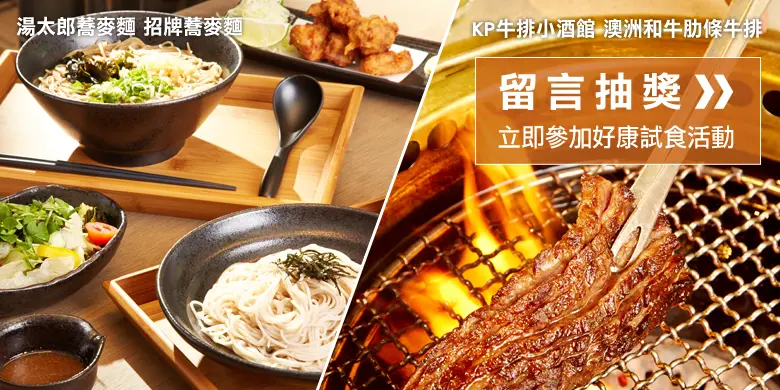 ● 試食餐點:KP牛排小酒館「澳洲和牛肋條牛排」*5名、湯太郎蕎麥麵「蕎麥麵兩份+炸物乙份+沙拉乙份」*5名