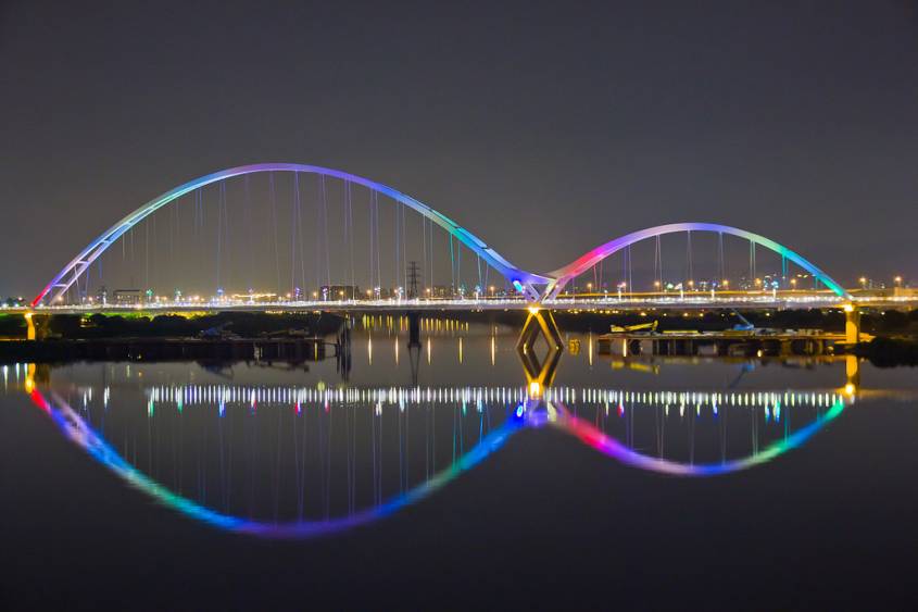 ▲新北市第3座專為行人與單車族打造的景觀橋「新月橋」,連結板橋435藝文特區與新莊廟街,可以活絡當地觀光,賞月又賞夜景,一舉兩得!( 圖 / 窩客『小風』提供、窩客島整理報導 )