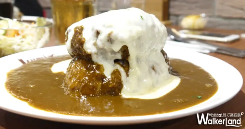 ▲超重型12盎司起司漢堡咖哩飯NT480,100%純牛肉漢堡排讓人大呼過癮。(圖/WalkerLand)