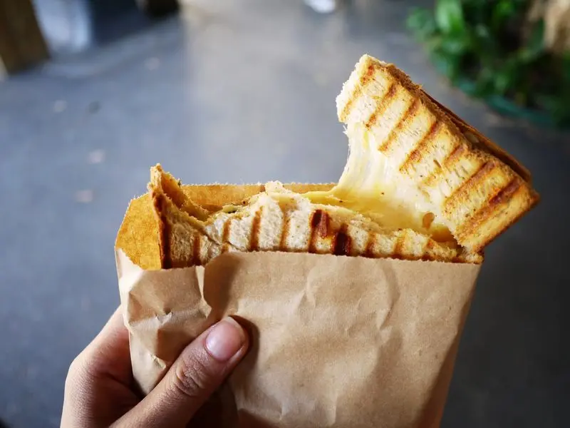窩客『YOYO』推薦:三明治用的是全麥吐司,淡淡的麥香,加上烤得香酥,裡面的起司份量超極多的!!!!!每一口都是濃郁的起司呀~而且用的是雙色起司,有香濃的味道,帶著十分有嚼勁的口感,這樣才70元,真是很便宜耶!!!