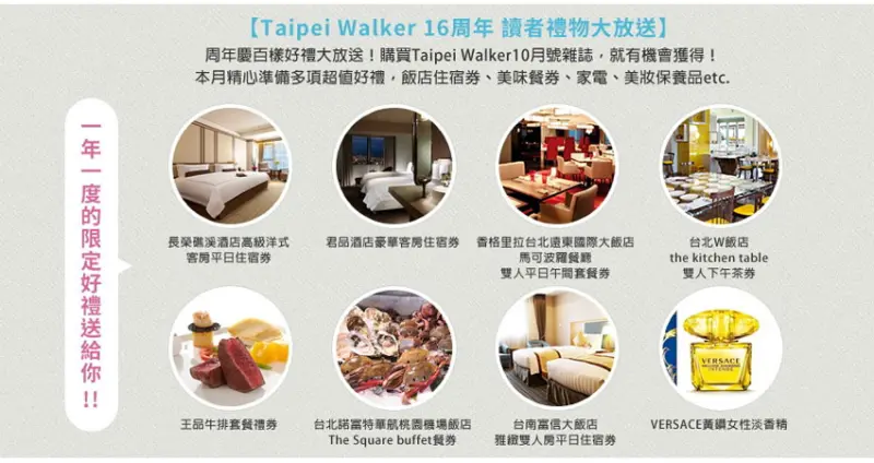 ▲《本月限定》購買Taipei Walker10月號就有機會獲得以上知名品牌...等相關優惠,還有爽爽貓便利貼喔!
