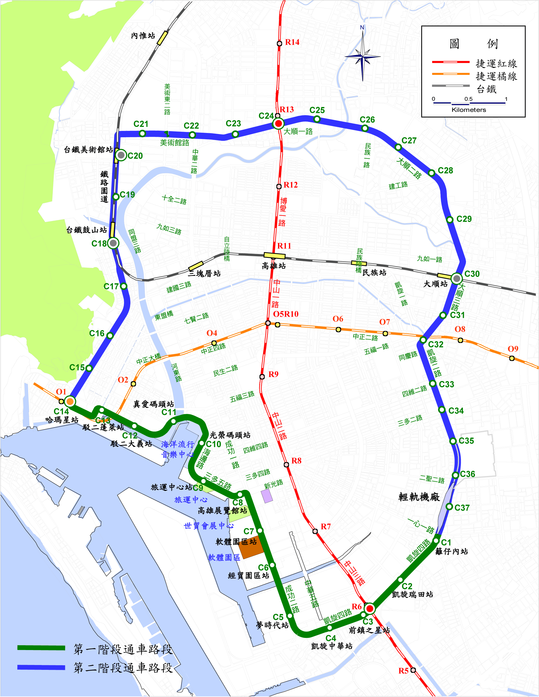 高雄輕軌今起試營運,目前只開放事先預約的民眾持一卡通於「C1籬仔內站」免費搭乘至「C4凱旋中華站」,來回一趟車程約15至20分鐘,中途不開放民眾下車。