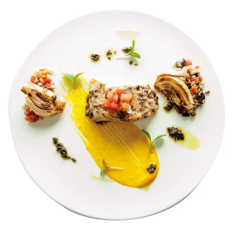 ▲ 爐烤青衣魚、茴香、番紅醬汁,將義式風味完整呈現。(圖/維多麗亞酒店 la FESTA)