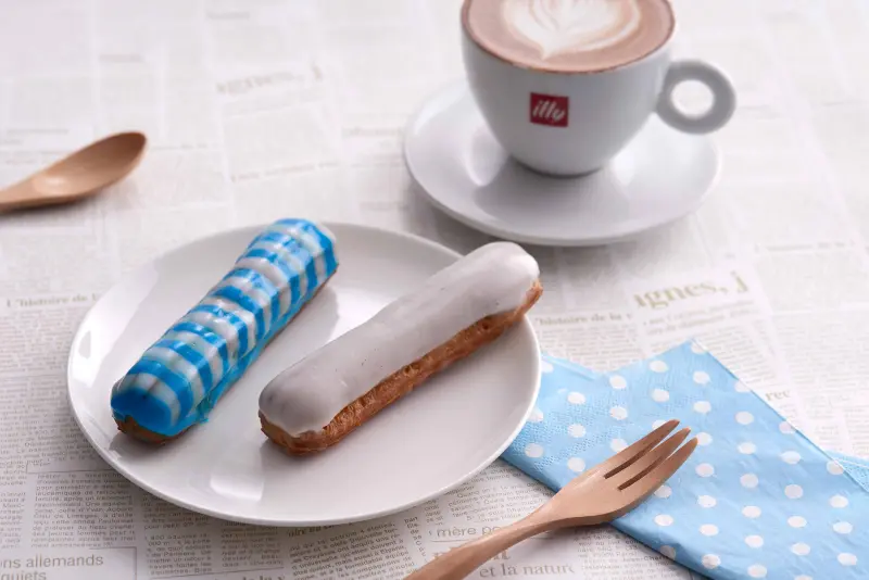 ▲ART TAIPEI 2015限定款艾克力-開心果櫻桃艾克力:以博覽會指定色作為創意發想,簡約的藍白拼接,輕爽的開心果卡士達醬,搭配濃郁的酒漬櫻桃,勾勒出秋日甜品的風情萬種,每個售價NT$120。(圖/台北寒舍艾美酒店)
