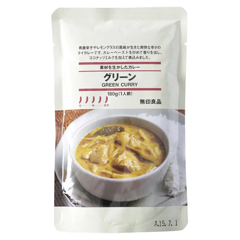 ▲ 異國咖哩速食包(綠咖哩),110元:將香料翻炒爆香,加入濃厚的椰奶燉煮,展現青辣椒與檸檬香茅風味的清爽香辣泰式咖哩。(圖/MUJI 無印良品)
