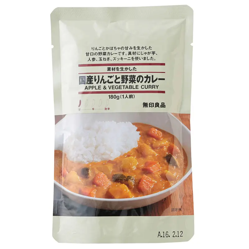 MUJI無印良品以印度與泰式風味為基底,調配出10種口味豐富、用料多樣的異國咖哩速食包,像是使用青辣椒與檸檬香茅風味的泰式綠咖哩最適合喜好辛辣刺激的重口味民眾;而帶有蘋果和南瓜香甜滋味的蘋果野菜咖哩則是多數小孩與不嗜辣民眾的首選款!