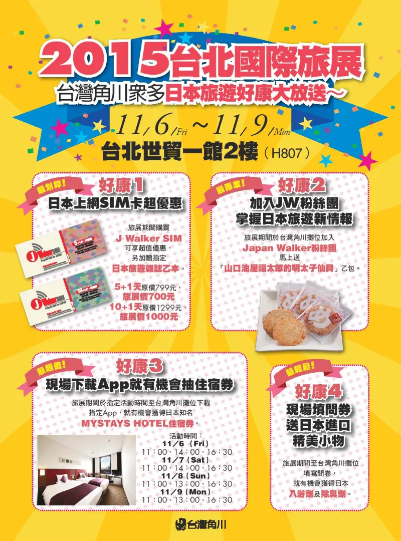 ▲2015 ITF台北國際旅展 台灣角川攤位 位在世貿一館二樓H807攤位!![]()