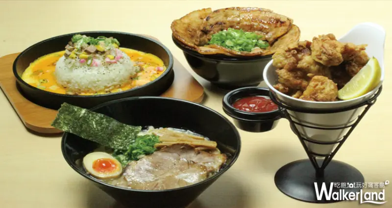 ▲豚骨醬油拉麵NT160元(左前)/湯頭醇厚蘊含深度,口感清爽不油膩。鐵板炒飯NT160元(左後)/半熟蛋液與炒飯在鐵板上滋滋作響,令人垂涎。豚井NT180元(右後)/豬肉片搭配青蔥宛如花朵綻放,色香味俱全。HERO招牌炸雞120元(右前)/包裹酥脆外皮的HERO獨門特製炸雞,肉質軟嫩。(圖/WalkerLand)