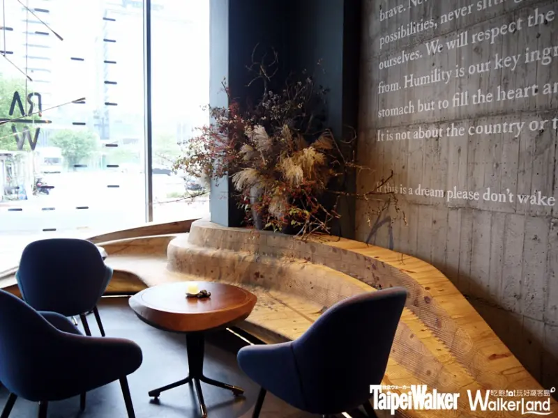 除了精彩的餐飲,RAW對設計品味也相當重視。從餐飲到整體設計,RAW延續一貫 “Nature x Craft”概念,兩位大師-Chef André(江振誠)與荷蘭建築師Camiel Weijenberg一同構想,提供RAW用餐者一個超脫過往經驗的用餐空間,透過木頭原始且流暢的線條將顧客一路從入口處引道至用餐區。RAW最醒目的「雲朵」設計採用台灣南方松,將南方松切成塊狀重新組裝,運用3D雷射雕刻技術完成這一巨作。RAW同時也致力邀請多位台灣設計師參與整個餐廳的設計,從燈光,菜單,花藝等。RAW不僅是一間餐廳,更渴望成為一個展現台灣美好的舞台。RAW將自己定位為一個生活風格的平台,提供用餐者一個具創意及有趣的迷人環境,將餐飲空間設計推向新極限。![]()