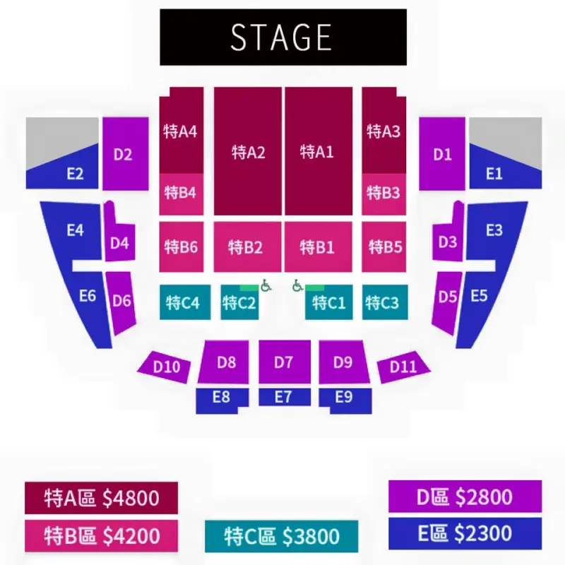售票價格:NT$4,800, NT$4,200, NT$3,800,NT$2,800, NT$2,300