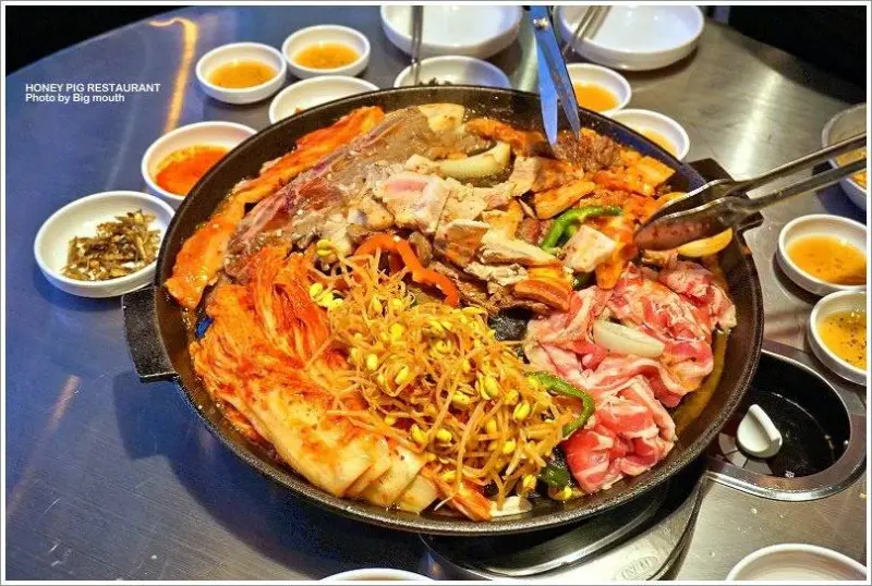 窩客「大口 」推薦:海外第一間分店就在台灣信義區誕生啦!「Honey Pig」主打100%韓流精神,從氛圍到食材,從店裝、烤盤、服務方式與經營方式,都與現在在台灣的韓式燒肉店不同;Micky說因為自己胖胖的,所以朋友都戲稱她為piggy,又因為她很愛吃甜食和蜂蜜,所以就決定以「Honey Pig」為店名。