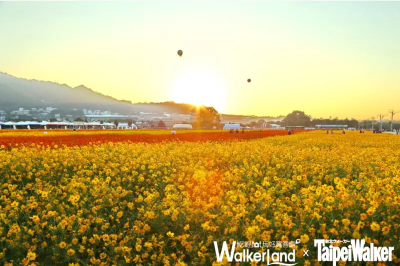 ▲這次台中新社花海節主要呈現的花卉有波斯菊、向日葵、青箱/高粱、百日草、油麻菜花。(圖/WalkerLand)