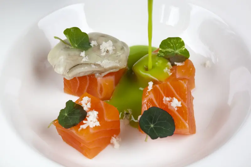 ▲Alyn 主廚做菜風格新穎,色香味面面俱到,並注重口味的層次感。(圖/香格里拉台北遠東國際大飯店 馬可波羅餐廳)
