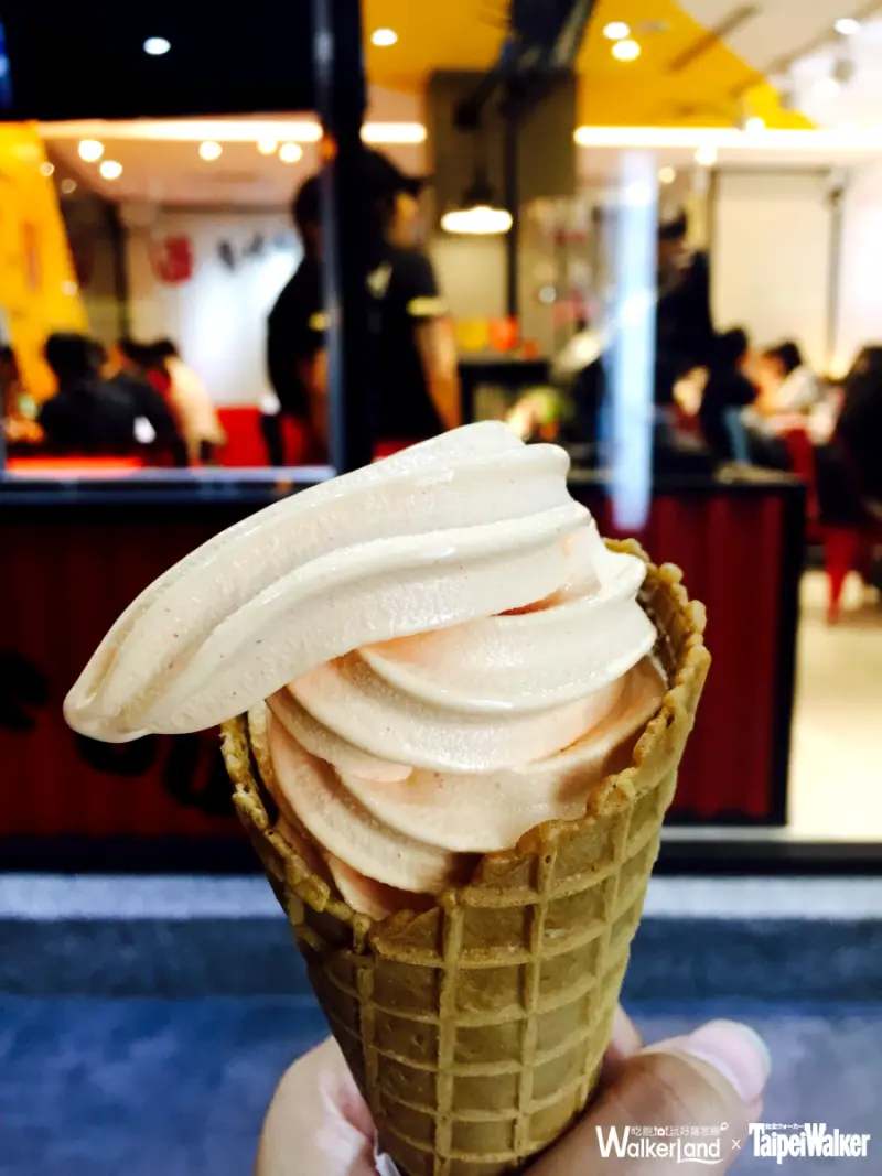▲全球第一隻「泡菜霜淇淋」淡淡的泡菜香氣還有些微辣椒片,在口中緩緩化開。(圖/WalkerLand)