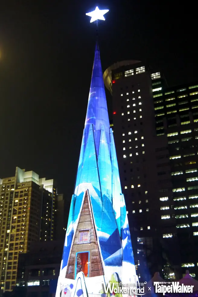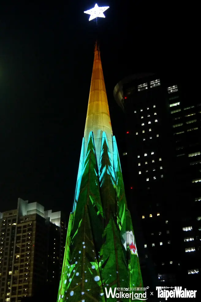 ▲「3D立體光雕聖誕樹」會隨著音樂改變圖案,每半小時展演一次、每次展演五分鐘。(圖/WalkerLand)