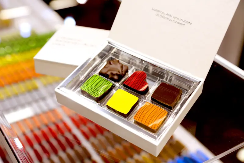 今年在全球規模最大的巧克力展「Salon du Chocolat」舉辦的評選中,青木定治連續第五年榮獲法國巧克力愛好者俱樂部C.C.C. (Club des Croqueurs de Chocolat)頒發最高榮譽「LES INCONTOURNABLES」(絕不容錯過的甜點師)的肯定,青木定治得獎商品Série de Pralinés 珍愛條碼(如上圖):(上排 左至右)criollo 克里奧羅巧克力、coeur framboise 愛心覆盆子巧克力、figue praliné 無花果榛果帕林內;(下排 左至右)praliné mâcha 榛果帕林內抹茶 、yuzu柚子巧克力、passion au lait百香果牛奶巧克力,預計2016年1月下旬開始在日本店面販售。