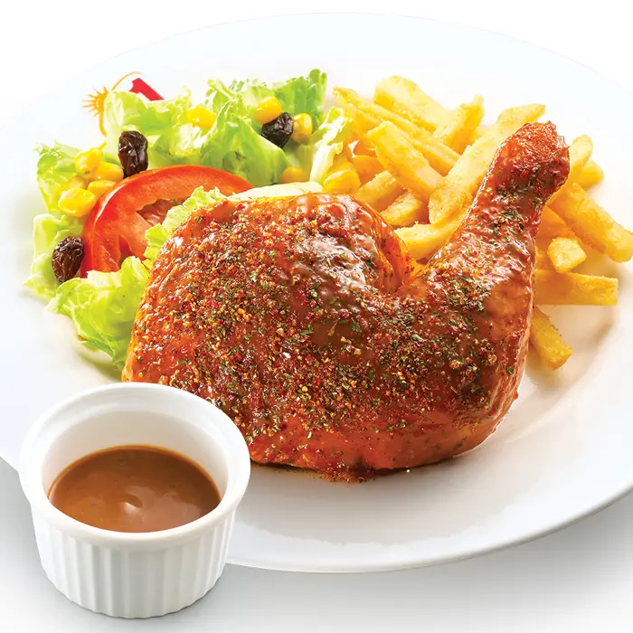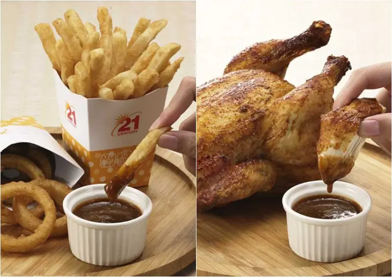 21世紀風味館師法外國餐桌,首度打造沾醬式烤雞吃法,推出全新「醬辣烤雞」,分為烤半雞(定價230元)、烤雞腿(定價120元)兩種選擇,滿足多人分享、個人獨享的需求。![]()