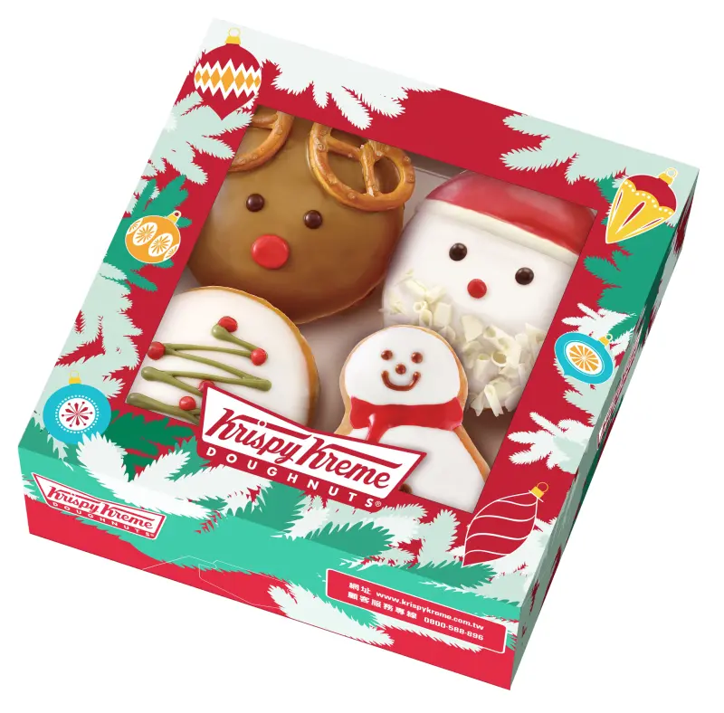 ▲當天您至門市購買甜甜圈時,不妨試看看Krispy Kreme 今年聖誕節期間的限定商品,共四款分別為聖誕老公公,俏皮雪人、卡哇依麋鹿、繽紛聖誕樹。(圖/Krispy Kreme)