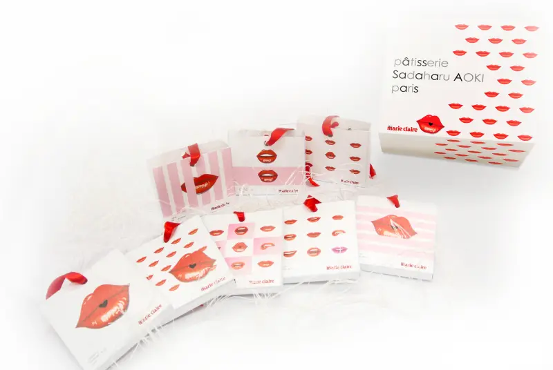 ▲「Marie Claire X Aoki法式甜心盒」為青木定治來台後,首度與時尚媒體聯名推出限定款商品,由青木定治挑選出8款最經典的甜點,每款皆以不同唇印設計為包裝,將其化身為時尚而具巧思的可愛吊飾,不僅可以收藏,讓品嘗美味的當下,次次打開皆可擁有不同驚喜!(圖/青木定治Pâtisserie Sadaharu AOKI Paris)