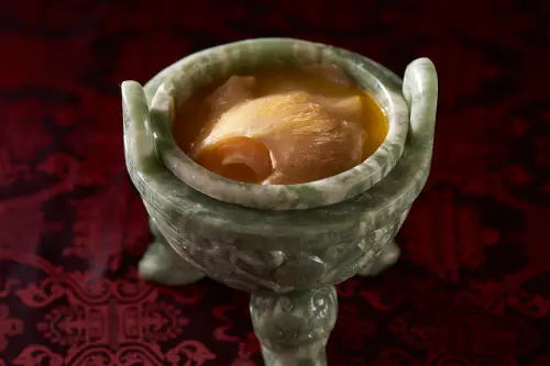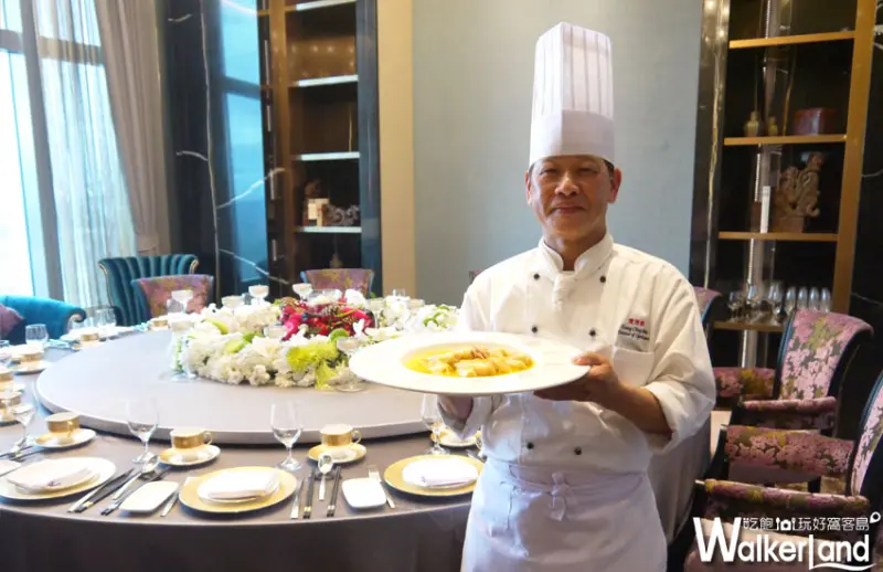 ▲《金湯寶鼎海中寶》金黃色的濃湯,搭配厚實的玉鼎,裡頭有蟹肉、鮑魚、干貝...等多種頂級食材熬製而成,不僅溫順鮮甜,享用起來更是華麗。
