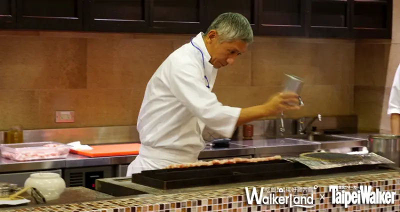 ▲「八兵衛 博多串燒」八島且典社長親下廚,現場展現熟練的撒鹽技巧。(圖/WalkerLand)