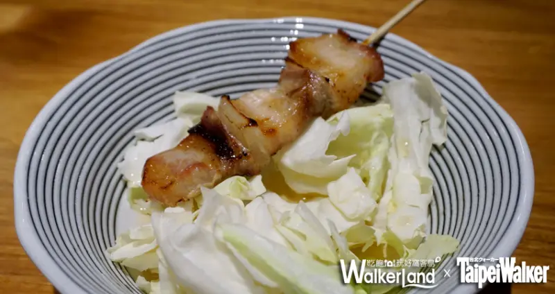 ▲「八兵衛 天神Style」豬五花串燒NT100/2串,肉質十分軟嫩店內招牌主打。(圖/WalkerLand)