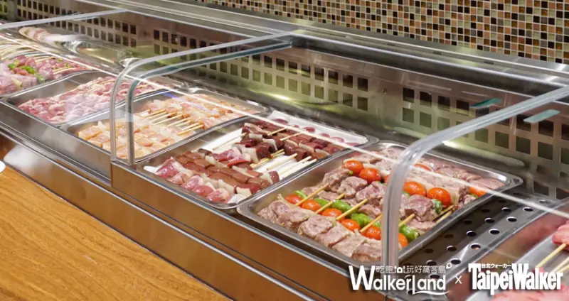 ▲「八兵衛 天神Style」吧台區的食材展示櫃,美味串燒料理新鮮看得見。(圖/WalkerLand)