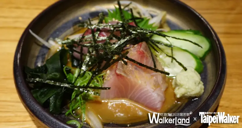 ▲「八兵衛 天神Style」博多風紅甘生魚片NT180,紅甘搭配胡麻醬是九州最道地吃法。(圖/WalkerLand)