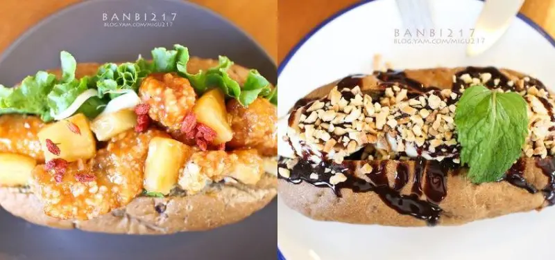 他的法式培根捲分鹹甜兩種口味,甜的就是在法式培根捲上淋上煉乳,也許是因為我比較不愛吃甜的關係,所以我覺得鹹的比較合我胃口。