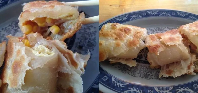 山東豆漿大王的燒餅油條我也很喜愛,不過這間店真正出名的招牌是中式燒堡,在燒餅裏加了很多生菜煎蛋和肉片的組合。
