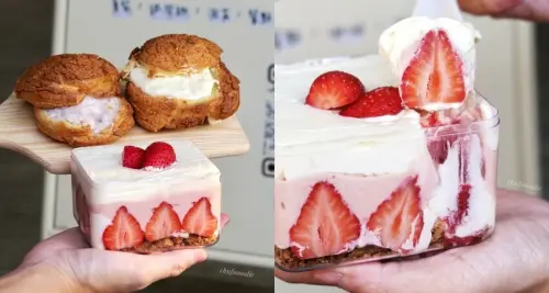 【寶寶的衣櫃Baby.o3o.party】這是草莓蛋糕還是草莓千層?其實是草莓寶盒啦~文藻外語大學旁的高雄泡芙甜點店~扎實顆粒芋泥內餡還有ᴏʀᴇᴏ巧酥泡芙