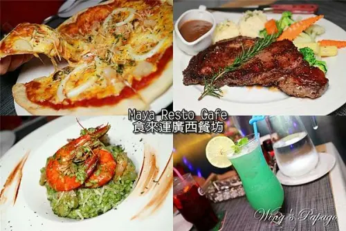 中山晴光商圈餐廳,有卡拉OK運動酒吧,Maya Resto Cafe食來運廣西餐坊/肋眼牛排,披薩,雞尾酒/包廂,團體包場聚餐/ 花博圓山咖啡廳美食。