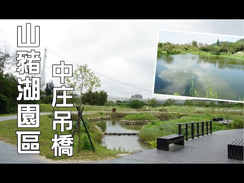 中庄吊橋,山豬湖生態親水園區,馬賽克青蛙,荷花池,山影池,在白色吊橋上看大漢溪河床,大溪景點!