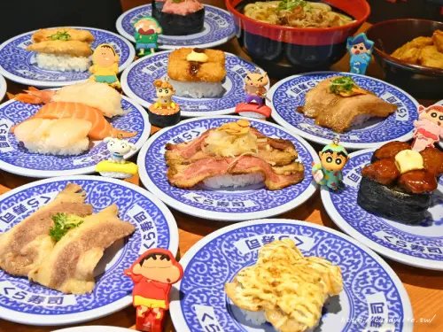 台中迴轉壽司推薦|藏壽司享肉祭超適合中秋節!直火爐烤牛肉壽司、熟成豬排握壽司直接來五盤~~還有蠟筆小新扭蛋唷 - 棉花糖的天空