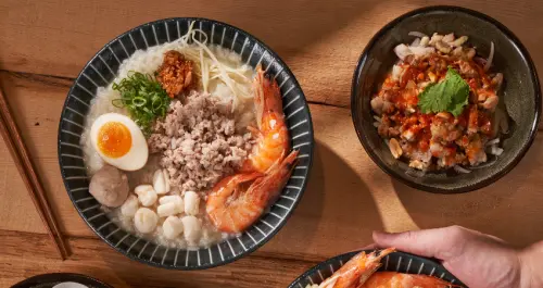 雞湯海鮮粥買一送一!新竹最強雞湯粥「粥大福Plus」插旗北車京站,對中「粥大福」任一字同音、不同調就有買一送一。