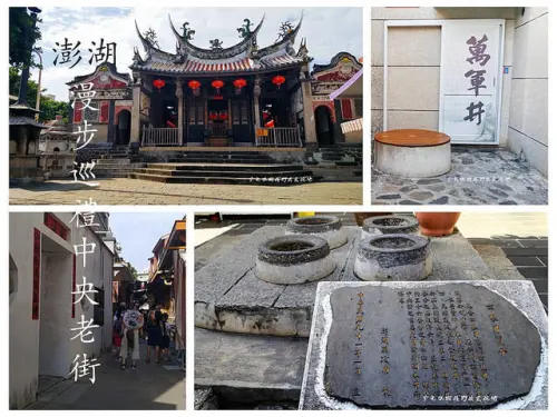 澎湖人文古蹟之旅。漫步巡禮中央老街。探訪古蹟天后宮。四眼井。中央旅社。萬軍井。施公祠