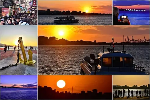 大年初一那天的【淡水】:老街爆炸人潮,夕陽粲然,水光天際盡染金