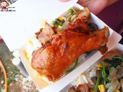 四種配菜一隻雞腿的雞腿便當,居然只要50元,超佛心的樂天阿嬤,圓夢老人在大園