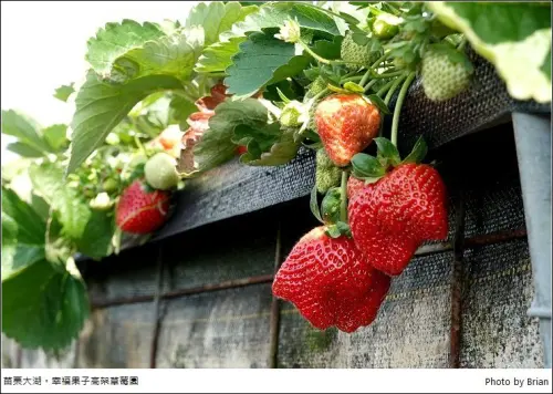 苗栗大湖幸福菓子高架草莓園。又大又紅三種品種草莓一次採