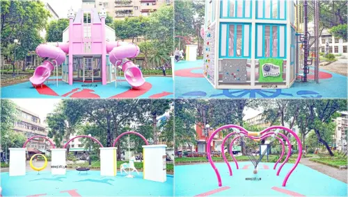 新北三重公園|永盛公園~以浪漫愛情城堡為主題搭配愛心吊椅、彩色木馬等各種設施,置身夢幻城堡及遊樂園