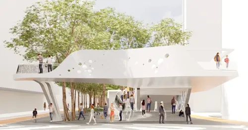 中山站1號出口回來了!5月完工「灰白系景觀平台」打造中山新地標。