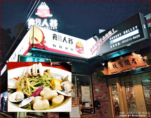 《桃園南崁美食餐廳》南崁有間客棧人文茶館複合式餐廳/聚餐聚會休閒的好地方/漁夫海鮮義大利麵/碳烤香料戰斧豬排/木盆嫩雞蔬果暖沙拉/洛神玫瑰鮮柚茶『餓人谷每食客棧(南崁店)』