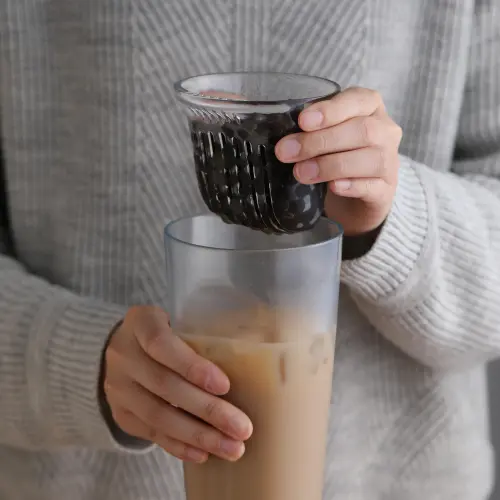 珍奶控等不及了!實踐大學學生吳天瑜、史芳與春池玻璃共同開發出「FLOAT無吸管珍珠奶茶杯 」,不用吸管也可以喝到珍珠奶茶。