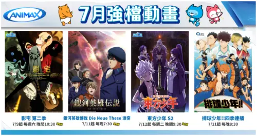 Animax頻道暑期新番大放送,人氣續作《影宅 第二季》《東方少年 S2》與日本同日播出。